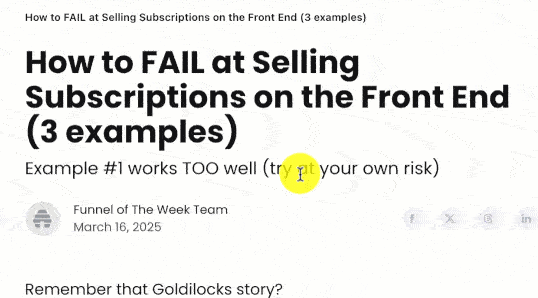 By submitting your email, you agree to receive the "eComm Subscription Fails" breakdown and occasional updates from Funnel of the Week. We collect your email address to deliver this content and may share it with our email service provider, Beehiiv, for processing. You can unsubscribe anytime. See our Terms of Service and Privacy Policy for details. Questions? Email [email protected].